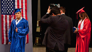 One by one, their names would be read. The students would cross the stage, shake the principal's hand, walk down a small flight of stairs and pose in front of an American flag for their official portrait.