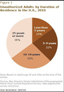 On December 1, the Pew Hispanic Center released a report estimating that nearly two-thirds of undocumented immigrants have been in the country for at least 10 years, more than a third for 15 years or more. Just 1 in 6 has been in the United States less than five years.