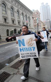 The judge asked what would happen if all 50 states adopted statutes similar to Georgia’s. Specifically, he asked how that would affect federal immigration officials who are required to respond to queries from local police about the legal status of suspects.