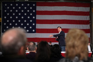 In a brief speech he trumpeted the former Massachusetts governor's economic credentials, as well as his ability to be commander in chief and restore America's power and influence in the world.
